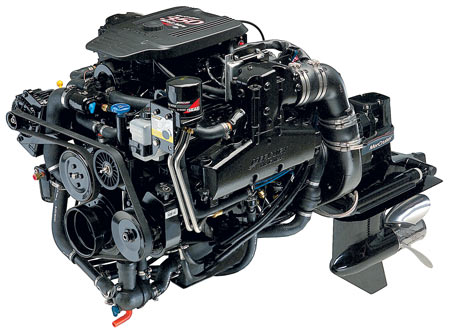 На круизерах среднего формата и спортивных лодках отлично зарекомендовали себя 8-цилиндровые двигатели MX 6.2 MPI (320 л.с.), 496 Magnum MPI (375 л.с.) и 496 Magnum HO (425 л.с.). Они оборудованы системой электронного впрыска и микропроцессором РСМ 555, оптимизирующим состав топливной смеси и работу системы зажигания. Примененные в газораспределительном механизме толкатели с роликовыми направляющими снижают уровень шума и повышают приемистость двигателя. Детали, изготовленные из алюминиевого сплава, нержавеющей стали и цветных металлов, являются залогом долговечности двигателей, на которые производитель предоставляет трехгодичную гарантию. Инженеры Mercury Marine внесли ценный вклад в совершенствование дизельных двигателей, сделав их пригодными к применению даже на спортивных яхтах и лодках. Особой популярностью (как правило, в спаренном варианте) пользуется турбодизель MerCruiser D1.7L с непосредственным (механическим) впрыском — самый экономичный и легкий в своей категории и удовлетворяющий всем современным стандартам. MerCruiser D1.7L чрезвычайно устойчив к коррозии, чему способствуют система охлаждения закрытого типа и детали из уникального алюминиевого сплава ХK-360 с низким содержанием меди. Низким уровнем шума, отличной сбалансированностью, высоким ресурсом и экономичностью характеризуется семейство турбодизелей MerCruiser D-Tronic с непосредственным или предкамерным впрыском. Двигатели V6 рабочим объемом 2,8 и 4,2 литра развивают мощность соответственно 165 и 300 л.с. В сочетании с трансмиссией Bravo One X, Bravo Two X, Bravo Three X эти агрегаты составляют серьезную сонкуренцию наиболее продвинутым бензиновым двигателям. «Жемчужиной» семейства D-Tronic является 4,2-литровый мотор, низкая токсичность которого подтвержена сертификатом Swiss Lakes SAV1, полученным по итогам тестирования на Боденском озере.