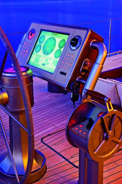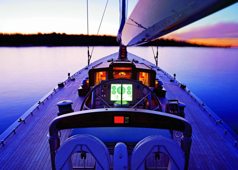 Перечислять навигационное оборудование, наверное, нет нужды — яхта имеет все, чему положено быть на современной лодке такого уровня, начиная с радара Nobeltec Admiral и заканчивая спутниковой телефонной связью Sailor SC4000. Двигатель Scania DI 1259M мощностью 350 л.с. и запас горючего в 8240 литров позволят не прерывать вояж даже в безветрие.