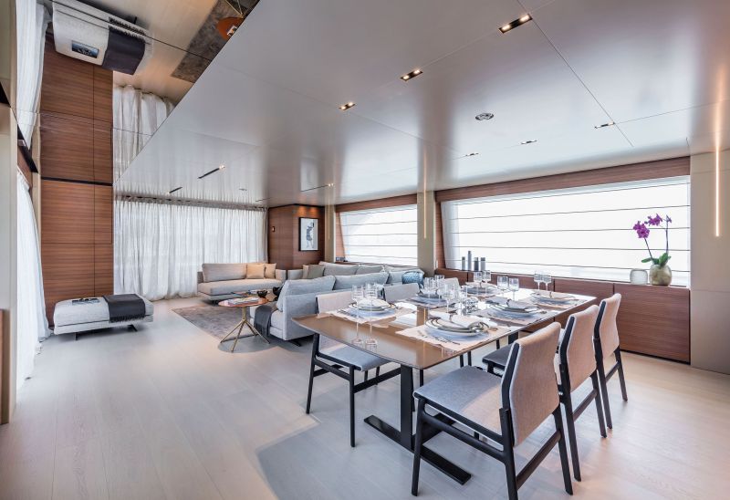 Все новые Custom Line Navetta оборудуются информационно-развлекательной системой VOTIS, которой владелец и его гости могут управлять со своих смартфонов и планшетов. Ее дополняет сетевой контроллер Kerio, благодаря которому на борту можно поддерживать две независимых сети Wi-Fi: одну для владельца и гостей, а другую – для экипажа, либо же одну общую, но с удвоенной пропускной способностью.