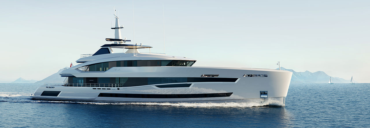 Современный экстерьер от Omega Architects напоминает приготовившегося к прыжку хищника. Являясь вторым судном в новой линейке 57-метровых алюминиевых яхт Heesen с быстроходным водоизмещающим корпусом (FDHF), Project Evita может похвастаться внушительным объемом в 780 GT.