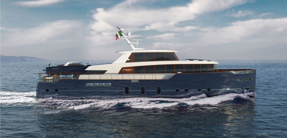 С 24-метровой Picchiotti 24 начинается перезапуск одной из старейших верфей в мире. Ее история восходит к 1575 году. С торговых судов на прогулочные яхты она переключилась в XX веке. Вся серия Picchiotti Gentleman с экстерьером от студии Луки Дини вдохновлена «золотой эрой» яхтинга и предлагает алюминиевый корпус с возможностью гибридного или полностью электрического двигателя. На борту может быть 3–4 каюты. Доступны три варианта оформления интерьера: Hamptons Line с мебелью и помещениями в белых тонах, Manhattan Line, вдохновленная Нью-Йорком, и Modern Line с современной эстетикой. Особенностью модели является раскладная морская терраса и один из самых больших пляжных клубов среди лодок ее габаритов. Яхты Picchiotti оснащаются гибридными или электрическими двигателями. Каждая поставляется с кастомизированным тендером в стиле материнского корабля.