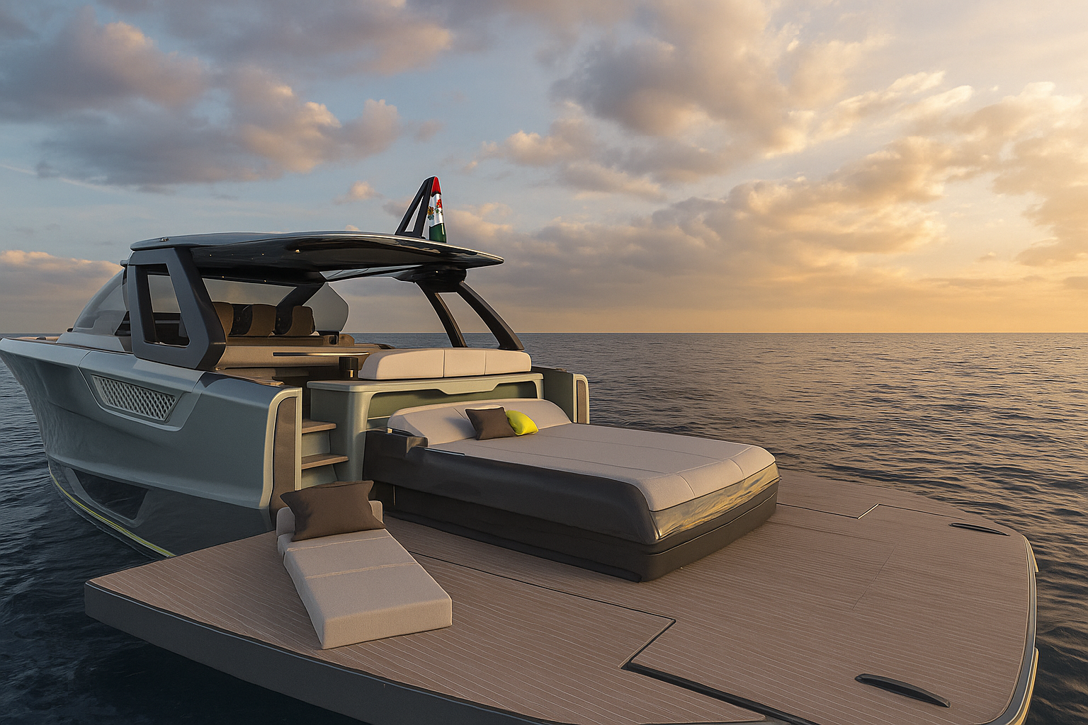 VanDutch 75 переосмысливает фирменную эстетику «черное и белое» с современным дизайном, лакированными отделками и тонкими контрастами, соединяя средиземноморскую элегантность с техническими инновациями.
