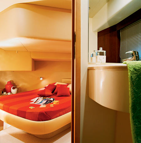 Но главная новинка — спальная зона. В итальянской душе борются две страсти: преданность семье и мужской эгоизм. В предыдущей версии 2004 года верх взяли семейные ценности, и планировка нижней палубы соответствовала правилам «золотого полтинника»: мастер, VIP и две гостевые. Но в elite победила концепция «все для меня, любимого»: две огромные каюты, в которых есть буквально все.