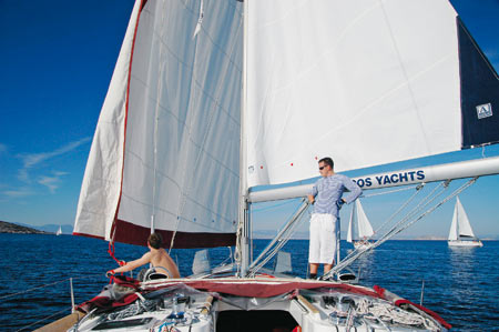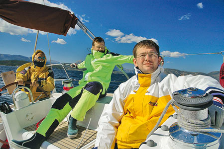 Первый день традиционно отводится знакомству с лодкой и тренировкам. В нашем случае это было более чем актуально, ибо имеющийся экипаж, очевидно, был самым негоночным из заявленных: двое любителей вальяжных круизов под парусом, один владелец моторной лодки, один мастер спорта по плаванию и, наконец, уже упоминавшийся Алекс — наш давний друг, чей 30-летний стаж шкипера и гонщика внушал единственную надежду не опозориться.