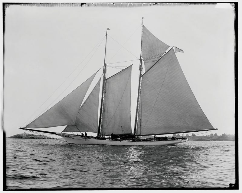 «Странная низкобортная черная шхуна, с франтовскими мачтами» — так характеризовали «Америку» англичане — была построена в США в 1851 году в качестве ни много, ни мало политического оружия: это было время, когда Новый Свет уже начинал демонстрировать свои амбиции Старому. С момента принятия дерзкого решения командором Нью-Йоркского яхт-клуба Джоном Стивенсом до старта регаты на «Приз 100 гиней» оставалось всего девять месяцев. Cиндикат, cозданный для финансирования американского участия в гонке, оказался при выборе яхты в затруднительном положении. Первоначальная идея отправить на регату лоцманскую шхуну «Мэри Тейлор» была отвергнута ее создателем, талантливым яхтенным дизайнером Джорджем Стирсом. Он заявил, что за оставшееся время (а оставалось на самом деле всего четыре-пять месяцев, ведь, кроме строительства и подготовки экипажа, яхте необходимо было еще пересечь своим ходом океан) он берется создать новую яхту, которой не будет равных в мире по скорости. К слову, это был серьезный риск, так как столь уверенный в себе Джордж Стирс не имел даже школьного образования. Срочный, но выгодный контракт на строительство принял местный судостроитель и один из богатейших людей Нью-Йорка Уильям Браун. Он тоже был уверен в себе, причем настолько, что его верфь дала обязательство нести все расходы по созданию яхты и принять их на свой счет в случае поражения в гонке. Об этом он написал в письме уполномоченному синдиката 15 ноября 1850 года. А уже 3 мая следующего года шхуна «Америка» была спущена на воду. Не все было благополучно: на испытаниях новая яхта уступила в скорости необычайно быстроходному швертботу «Мария», показавшему максимальную скорость в 17 узлов. Правда, всех остальных новая яхта обогнала. С учетом того, что упомянутая «Мария» пересечь океан не могла (поскольку была швертботом), синдикат принял «Америку», снизив ее контрактную стоимость с 30 до 20 тысяч долларов.