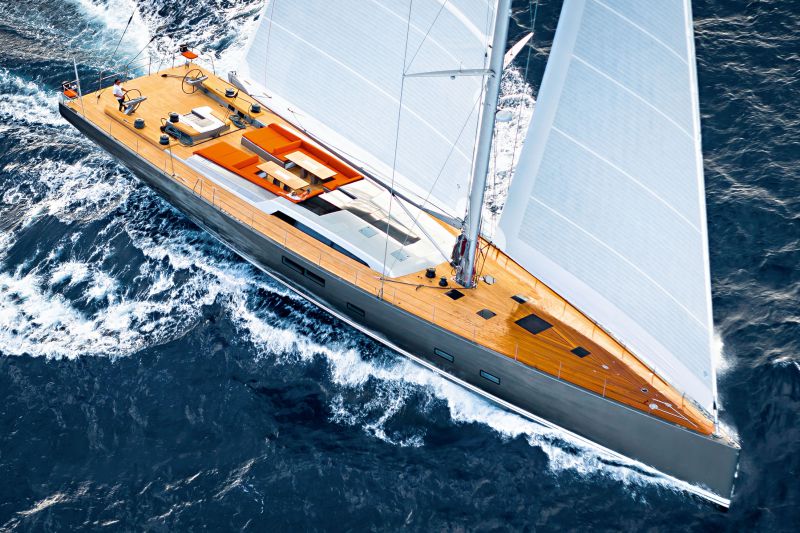 Развитие технологий парусных яхт не просто не стоит на месте — оно несется на всех парах. Еще сравнительно недавно парусный яхтинг ассоциировался скорее с безмятежным отдыхом в тишине, нарушаемой лишь плеском волн и шумом ветра в снастях. Если, конечно, не брать в расчет гонки. Но это совсем другое дело. Там царство минимализма и аскезы, легких и прочных, но не слишком тактильных материалов, тесных пространств, которые можно назвать укрытиями, но не каютами. Все это — для настоящих экстремалов, способных спать урывками по полчаса, питаться сухим пайком и спинным мозгом ощущать малейшее отклонение яхты от курса в океане с волнами высотой в пятиэтажный дом. Сегодня парусники способны развивать такие же скорости, как спортивные моторные яхты. Очередной большой рывок в этом направлении был сделан с приходом в мир паруса гидрофойлинга. В то же время соединить выдающиеся ходовые качества с комфортабельным интерьером и всеми атрибутами «курортного тюленьего» образа жизни всегда было и остается нетривиальной задачей.