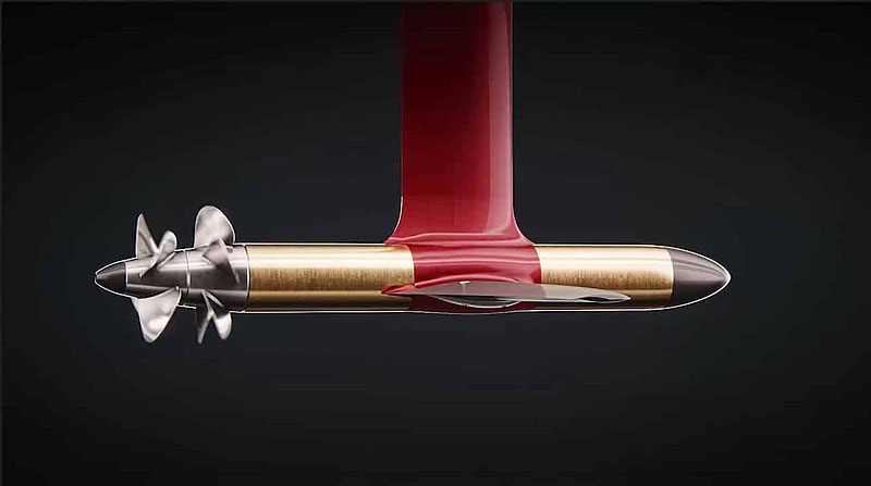 Он решил не просто строить более доступную модель C-8, а пойти гораздо дальше. Главный секрет катера длиной 8,5 м — силовая установка C-Pod собственной конструкции. Она состоит из двух электромоторов. Каждый из них приводит в движение пропеллер, вращающийся в противоположных направлениях. Блок привода похож на торпеду и весит всего 50 кг. Мотор располагается под водой. Candela увеличила частоту вращения и снизила крутящий момент, чтобы повысить удельную мощность Candela C-pod. В результате суммарная мощность двигателей составит 67 л.с., а КПД будет очень высок. Интервал техобслуживания 3000 часов. Практически это будет означать долгую-долгую эксплуатацию без ремонта. Мотор C-Pod от Candela по сути бесшумен, потому что у него нет зубчатой передачи или другого рычага и все устройство полностью погружено под воду. Ни шестерен, ни масла, ни потерь энергии из-за трансмиссии.