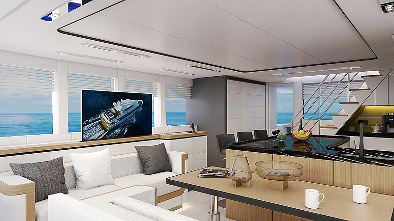 В преддверие спуска на воду эксплорера XPM85 турецкая верфь Naval Yachts опубликовала его интерьеры. Это современный дизайн в контрастной гамме: антрацитовые акценты дополняют приглушенно-белый фон. По желанию можно включить теплое или холодное освещение, чтобы белый выглядел уютным сливочно-бежевым или приобрел голубоватый оттенок. На борту 25-метровой яхты оборудованы мастер-апартаменты и две гостевые каюты, увеличены объемы мест хранения и топливные танки, ведь XPM85 рассчитан на длительные путешествия, включая высокоширотные акватории. Пара двигателей Scania позволит алюминиевой яхте разгоняться до 16 узлов, а в экономичном режиме проходить около 7000 морских миль без дозаправки.