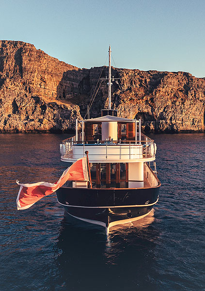 На фоне футуристических трендов в современном яхтенном дизайне она действительно выглядит нарочито старомодно: корпус как у парусного люгера, массивная дымовая труба, квадратная надстройка с деревянной обшивкой. Однако поклонники у такого ретростиля всегда были и, видимо, всегда будут.