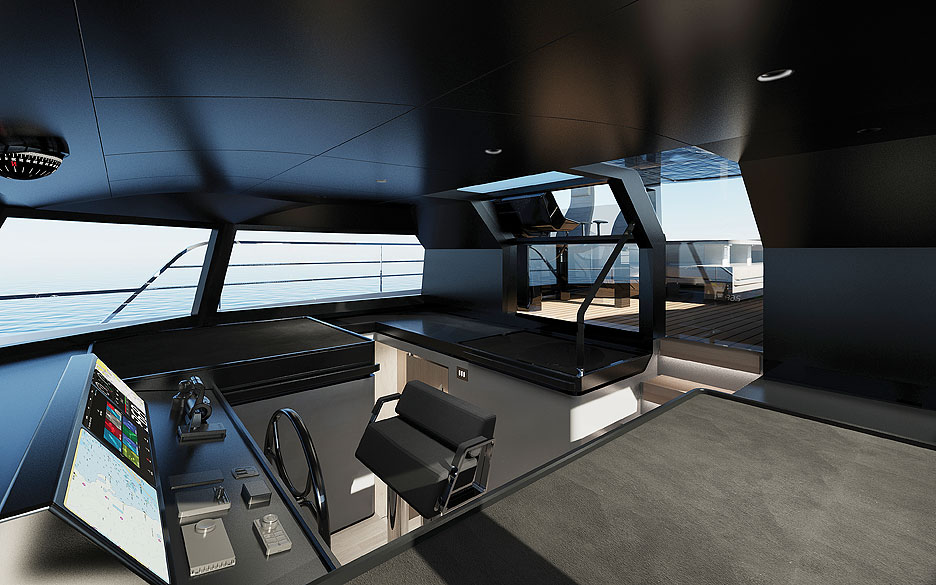 Как всегда у Arcadia, кормовая часть главной палубы представляет собой затененную террасу, плавно переходящую в пляжный клуб. Откидные борта расширяют пространство, удобная лестница ведет прямо к морю — безопасно даже для маленьких детей и пожилых. Это и есть та самая фирменная «функциональная роскошь» от Arcadia.
