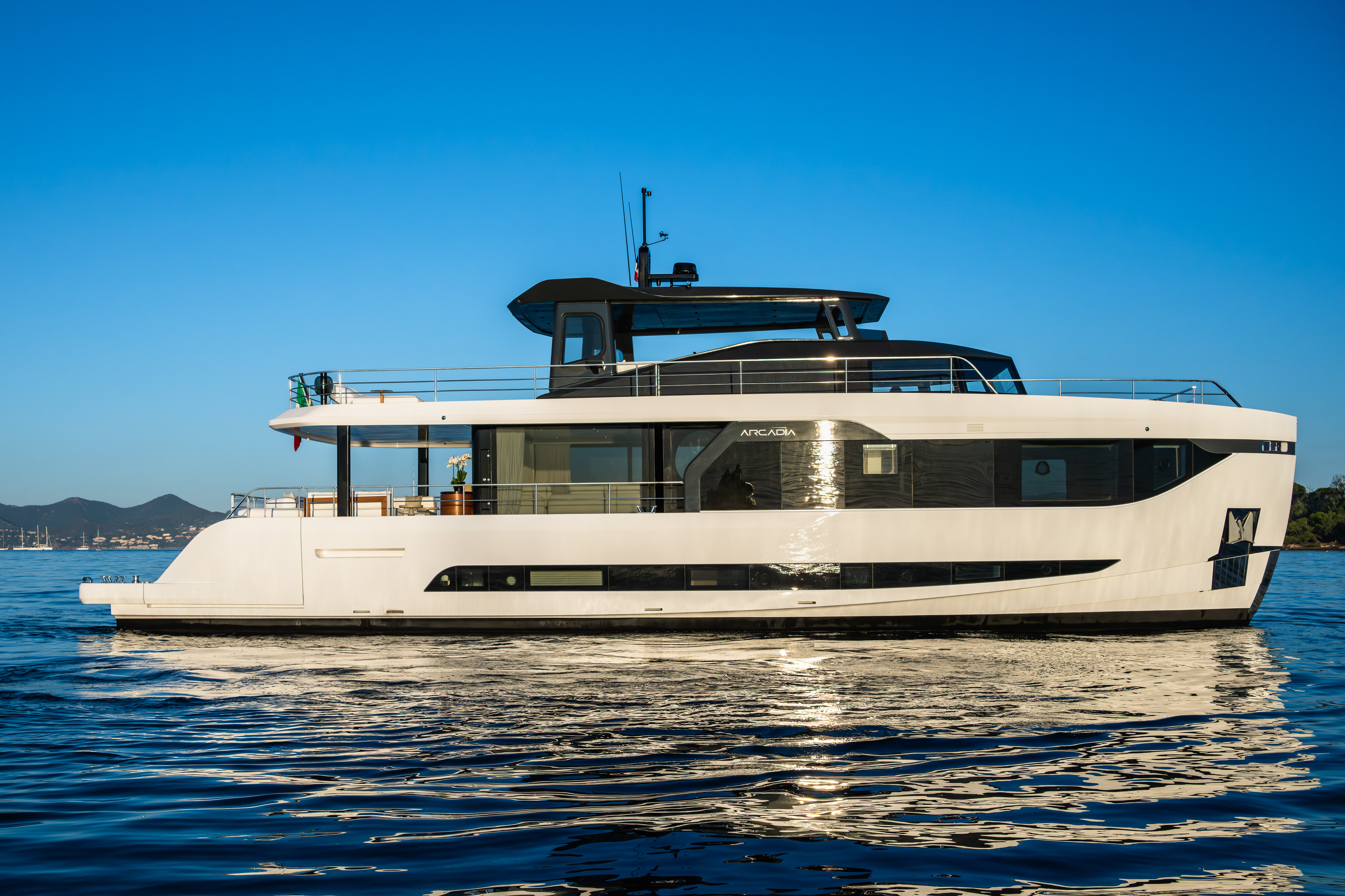 Яхты Arcadia всегда славились шириной корпуса, остойчивостью и простором на борту. Теперь бутиковая верфь из окрестностей Неаполя добавила к и без того тщательно продуманной планировке модную в яхтенном мире идею — приподнятую рубку (raised pilot house, RPH). Это означает, что свободного места на главной палубе станет еще больше. Первой моделью данного типа стала A80. Проект 24-метровой яхты был с гордостью представлен основателем верфи Уго Пеллегрини на онлайн-пресс-конференции в апреле, а вживую первый корпус можно будет увидеть уже осенью. Непременно присмотритесь к нему повнимательнее, когда будете на Каннском яхтенном фестивале (9–14 сентября).