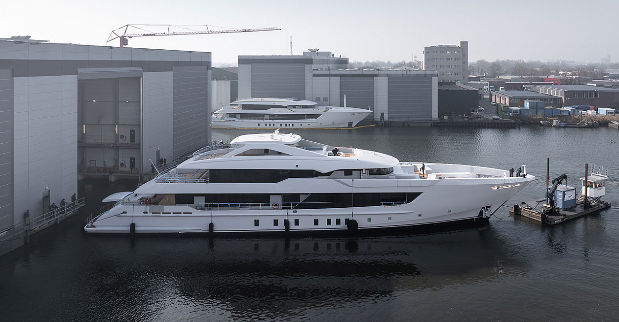 Дерзкий характер с первого взгляда покоряет современными решениями и новаторскими деталями. Взгляните на этот выразительный «акулий зуб» на выступе рулевой рубки! Обтекаемая форма корпуса кажется простой, без излишне сложных изгибов, а надстройка в кормовой части яхты кажется с ней единым целым. Это стирает границы между внутренним и внешним пространством, открывая захватывающие морские виды практически из любой точки, включая скайлаунж. Неразрывную связь с морем усиливает безрамное остекление с панорамным обзором в обеденной зоне на главной палубе.