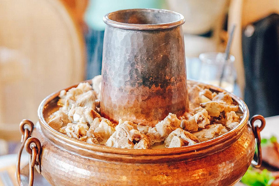 Куньмин — еще и столица юньнаньской кухни. Благодаря высокой влажности и мягкому температурному режиму в регионе круглый год выращивают фрукты и овощи, к тому же это край диких грибов. Одним из самых любимых блюд горожан считается тушеный джизонг. Гриб, по вкусу напоминающий курицу, собирают в окрестных горах, подсушивают и измельчают. Затем нарезают свиную вырезку и чили. Грибы, свинину и перец обмакивают в кляр и жарят в масле, после чего аппетитные кусочки посыпают имбирем и чесноком и поливают кунжутным маслом. Знаковый местный десерт — сладкие слоеные пирожки с начинкой из лепестков роз. Зарядиться энергией на весь день помогает рисовая лапша «Пересечение моста» в говяжьем бульоне с тонко нарезанным мясом и овощами.