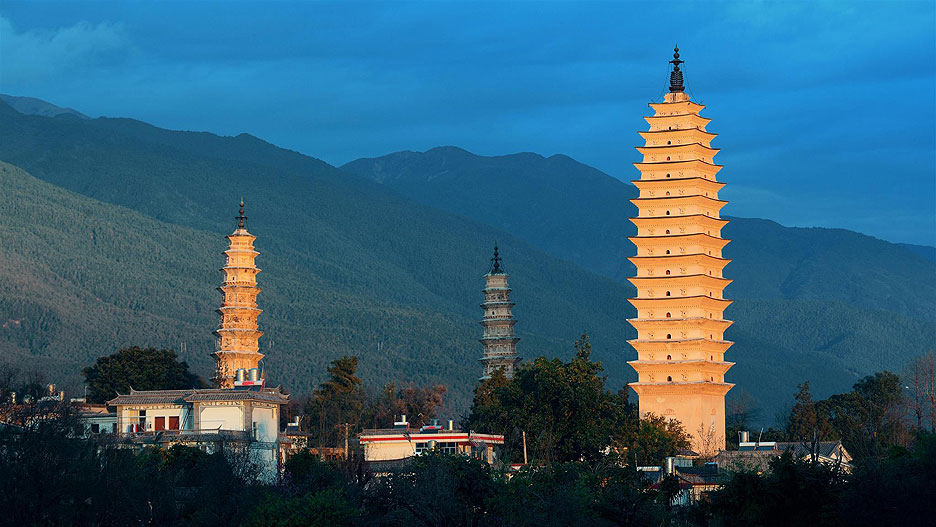 Визитной карточкой Дали являются Три пагоды храма Чуншэн – одно из хорошо сохранившихся древнейших строений на юге Китая. Ансамбль раннесредневековой эпохи Тан состоит из трех симметрично расположенных пагод, образующих в плане равносторонний треугольник. Такая композиция уникальна для буддийских сооружений и придает городу особое очарование.