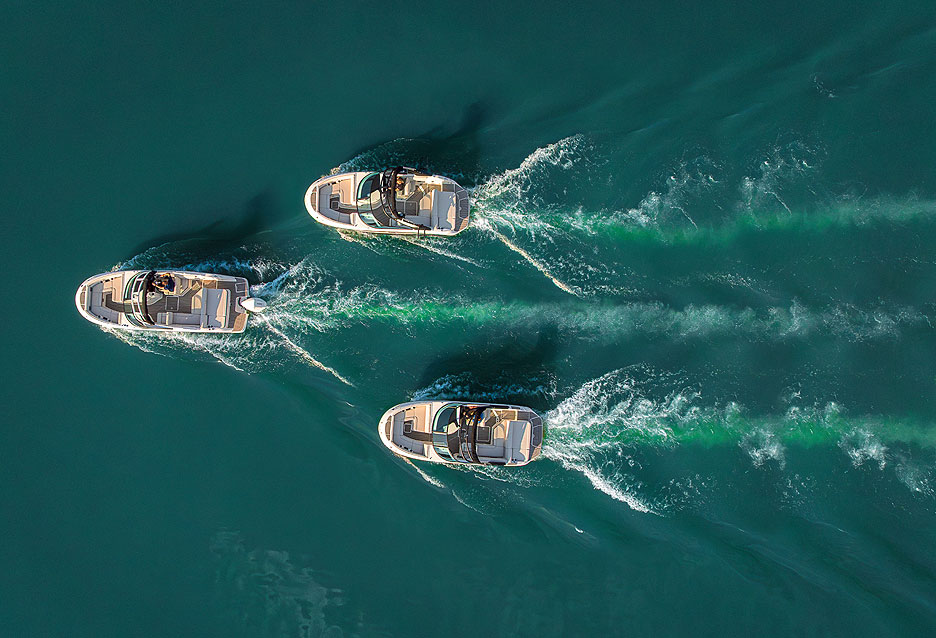 Для максимальной персонализации клиенты могут выбрать один из нескольких пакетов опций. Так, пакет Entertainment предусматривает 4 индукционные зарядные станции, пульт дистанционного управления на транце и улучшенную аудиосистему. Comfort включает в себя стол и подушку-заполнитель для носовой части. Стартовый пакет отличается покрытием купальной платформы напольным покрытием SeaDek, тентами для носа и транца и элегантной двухцветной внешней отделкой. В Пакет Подсветки входит светодиодное надводное освещение с изменением цвета и подводные огни.