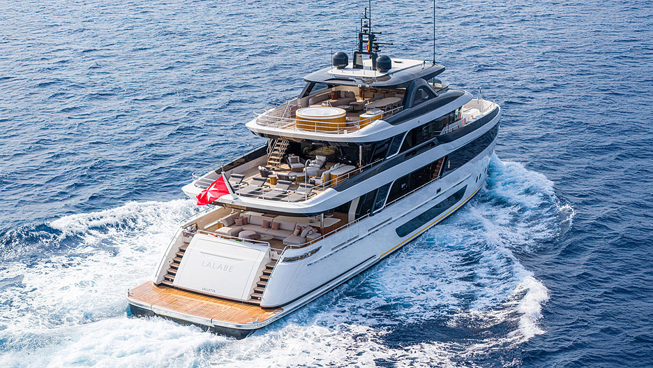 В облике Lalabe угадывается дух классических яхт-путешественниц, переосмысленный на современный лад. Затемненные детали и тонированное остекление визуально облегчают силуэт.