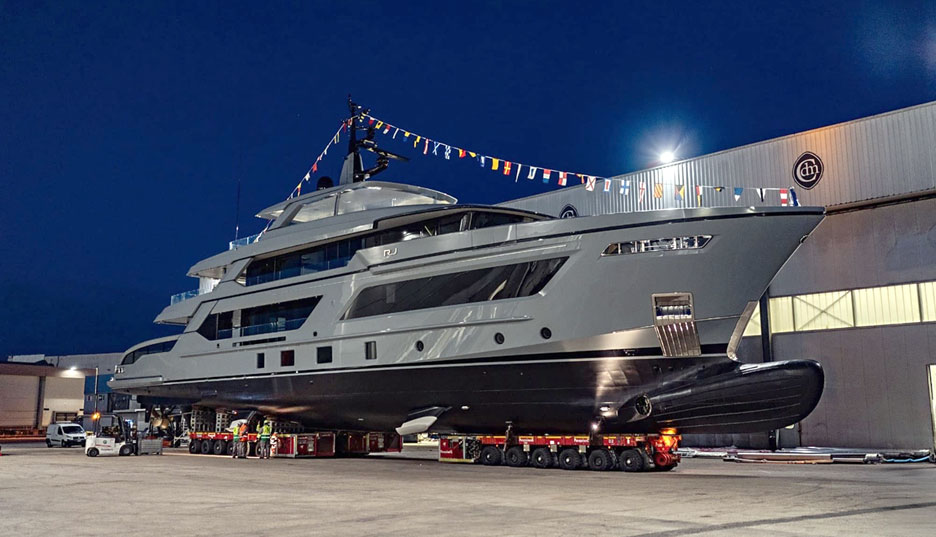 Самую большую из яхт-дебютанток Cannes Yachting Festival этого года представляет Cantiere delle Marche. Стальная экспедиционная яхта RJ 155 (46,9 м) способна пройти автономно более 5000 морских миль. Дизайн линейки RJ разработал Франческо Пашковски, а отличительными чертами модели стали удлиненные свесы палуб и просторные кормовые террасы. Архитектура корпуса — работа студии Pierluigi Ausonio, а интерьер создан Ахиллом Сальваньи. Яхта рассчитана на 12 пассажиров в пяти каютах и развивает инженерные идеи, заложенные в RJ 130 (Nuri, 2021).