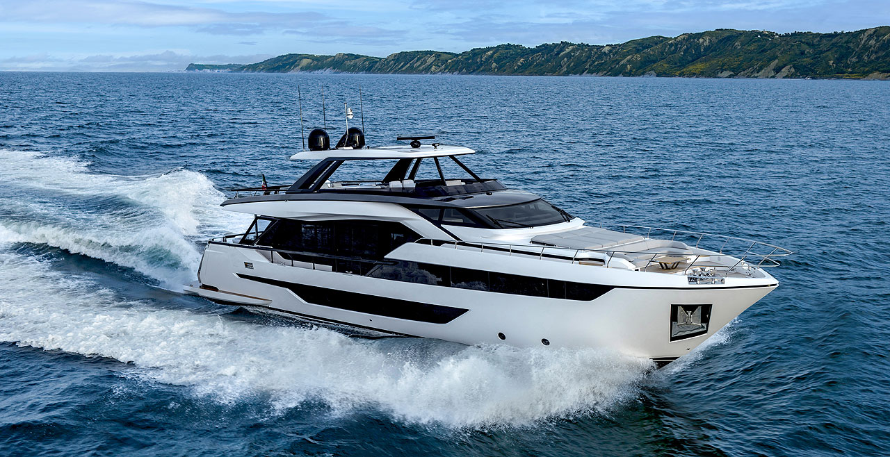 Когда взгляд скользит по широким горизонтальным линиям палуб, лодка предстает во всем своем изяществе. Ferretti Yachts 940 — это триединство динамики, воздушной легкости и гармонии с морем. Панорамные окна и утонченная игра цвета в интерьере складываются в неповторимый современный стиль.