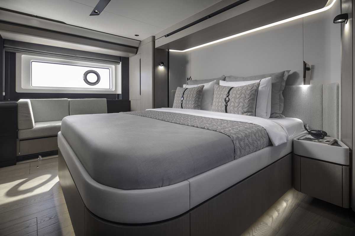 Как и в Sirena 58, базовая конфигурация остается прежней: три просторные каюты. Среди них — впечатляющая каюта владельца во всю ширину корпуса в средней части судна, просторная VIP-каюта в носовой части, а также гостевая каюта с раздвижными кроватями. Во всех каютах стало больше места для хранения.