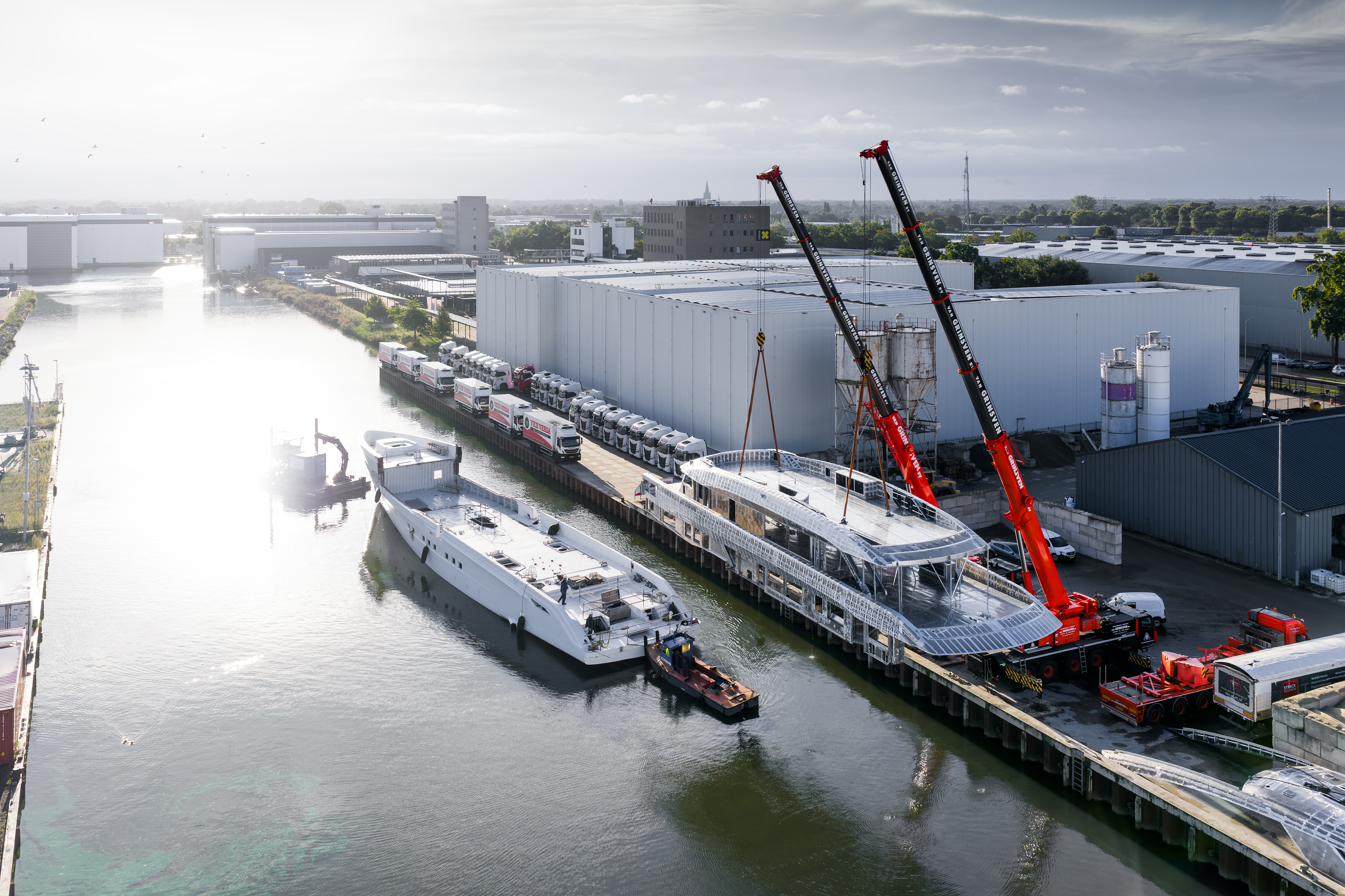 Heesen Yachts провела «женитьбу» (соединение корпуса и надстройки) яхты проекта YN 21350 Project Grace — первой в обновленной линейке 50 m Steel class.