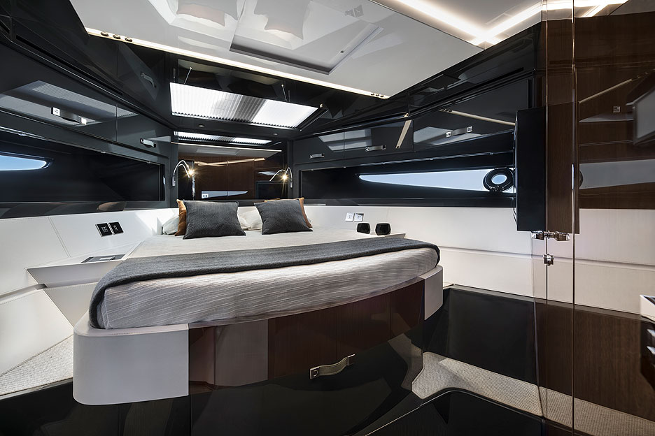 «Мастер» с поперечно расположенной кроватью находится в кормовой части, просторный двухместный VIP — на носу, а по левому борту есть еще одна каюта с собственным санузлом. В стандартном оснащении она одноместная и предназначена для капитана. Такое решение подходит тем, кто не хочет напрягаться, управляя лодкой самостоятельно. Опционально эту каюту можно сделать двухместной, оборудовать кроватями-полками и получить возможность разместить еще пару гостей. Последний вариант хорош для тех, кто, наоборот, против посторонних людей на борту, зато любит и умеет водить самостоятельно.